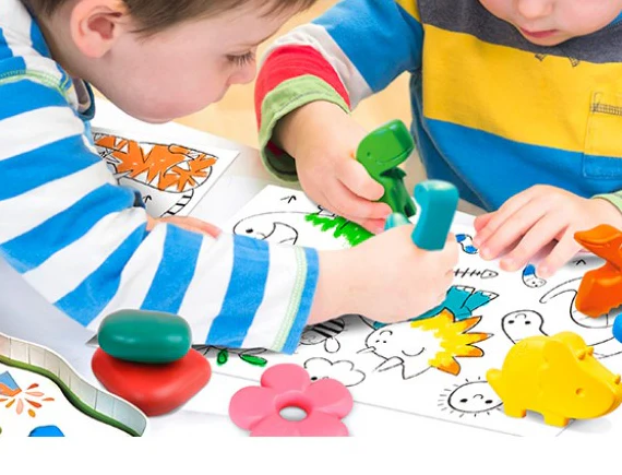 A los niños pequeños que están empezando a utilizar los colores les puede costar sujetarlos correctamente. En este caso, los crayones extragrandes de Haku Yoka son unos colores estupendos para principiantes porque son fáciles de agarrar y sostener, lo que hace que sea fácil colorear con ellos. Este set contiene seis simpáticos dinosaurios que, además de utilizarse para colorear, también pueden funcionar como marionetas para los dedos. Ten en cuenta que estos crayones para principiantes no colorean tan intensamente como los demás crayones de Haku Yoka, pero esto también significa que quedan menos residuos de crayón alrededor del papel de dibujo.