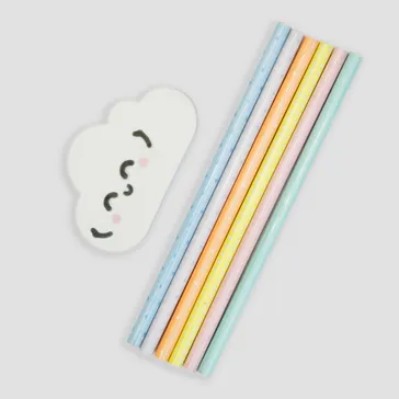 Set de 6 lápices y una goma de borrar de gran tamaño, con forma de nube Mr. Wonderful.