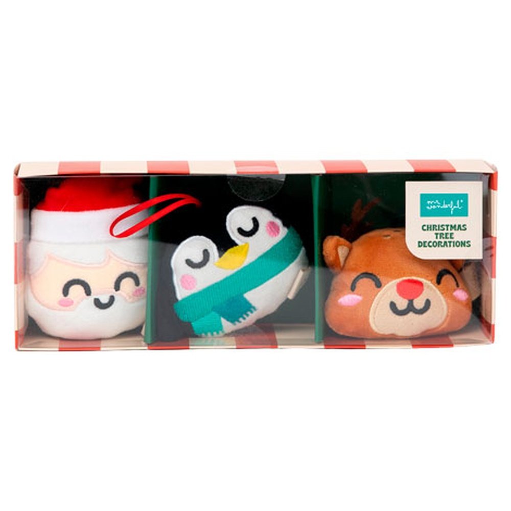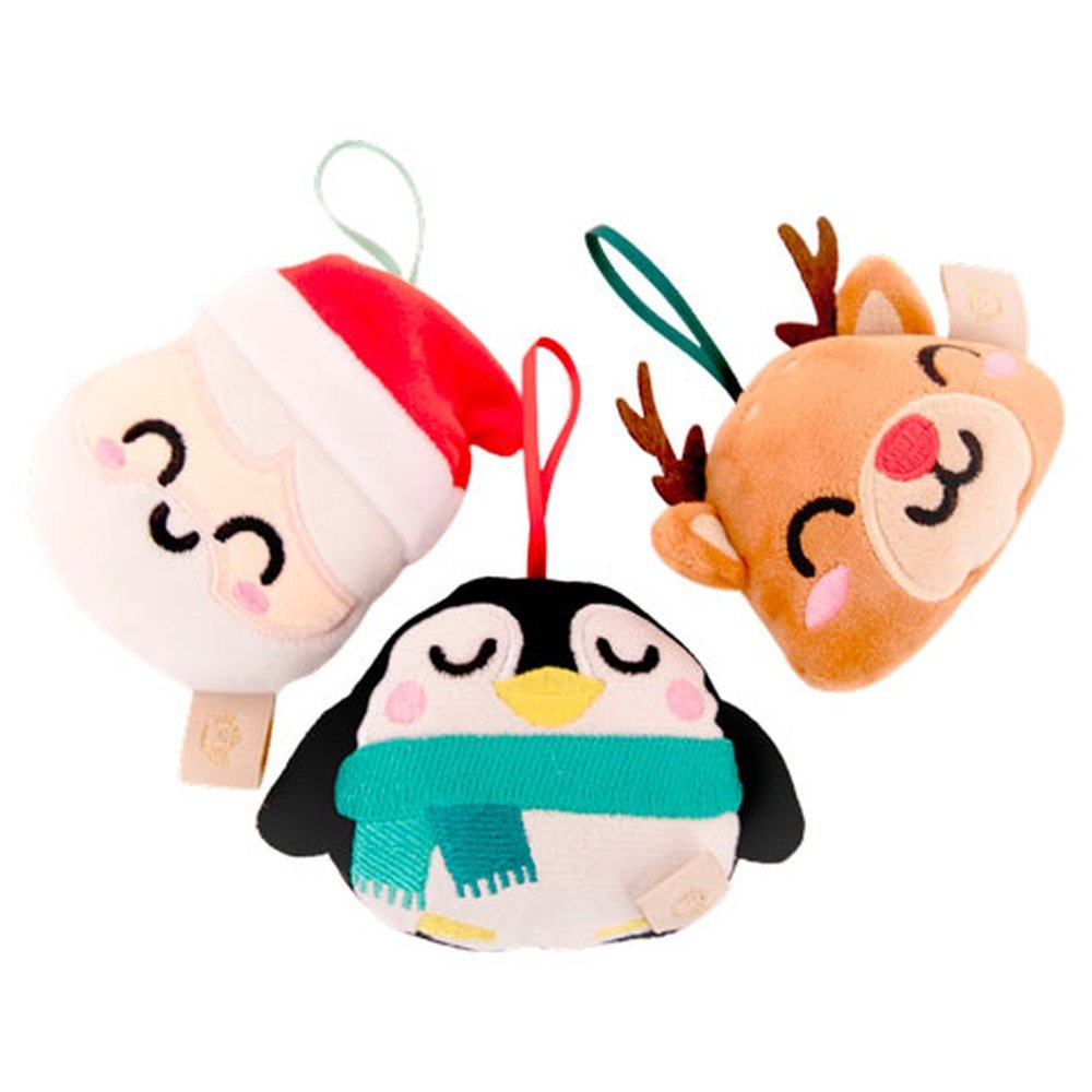 Set de tres adornos navideños para el árbol, realizados en poliéster._x000D_ Con forma de Papá Noel, pingüino y reno navideño, respectivamente._x00 0D_ _x000D_ Indicaciones: lavar a mano en agua fría. No planchar. No usar lejía. No lavar en seco. No meter en la secadora.