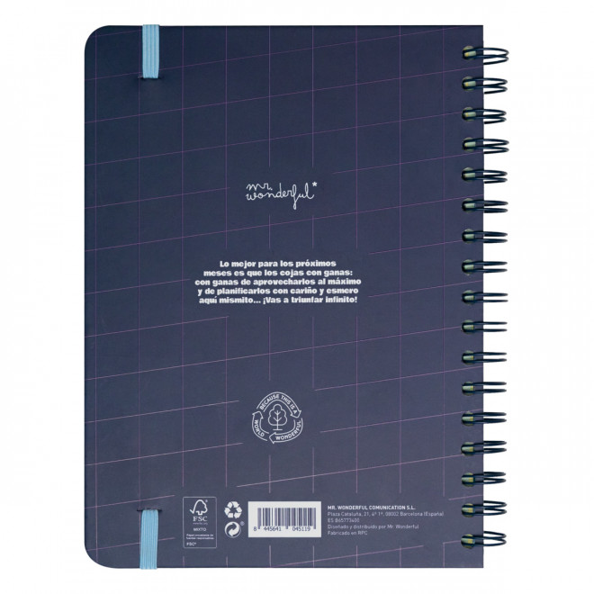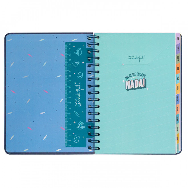 Agenda pequeña estilo Wonder de Mr. Wonderful, con organización semanal, va de septiembre de 2024 a finales de agosto de 2025. Esta agenda contiene.