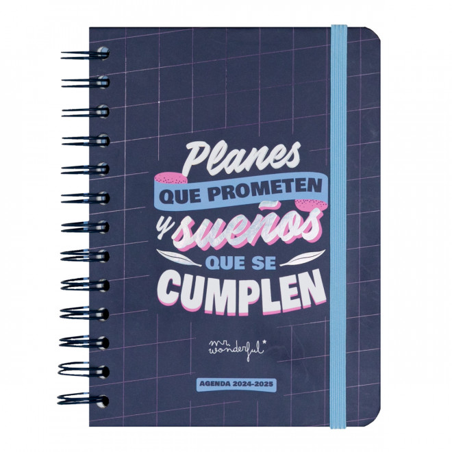 Agenda pequeña estilo Wonder de Mr. Wonderful, con organización semanal, va de septiembre de 2024 a finales de agosto de 2025. Esta agenda contiene.