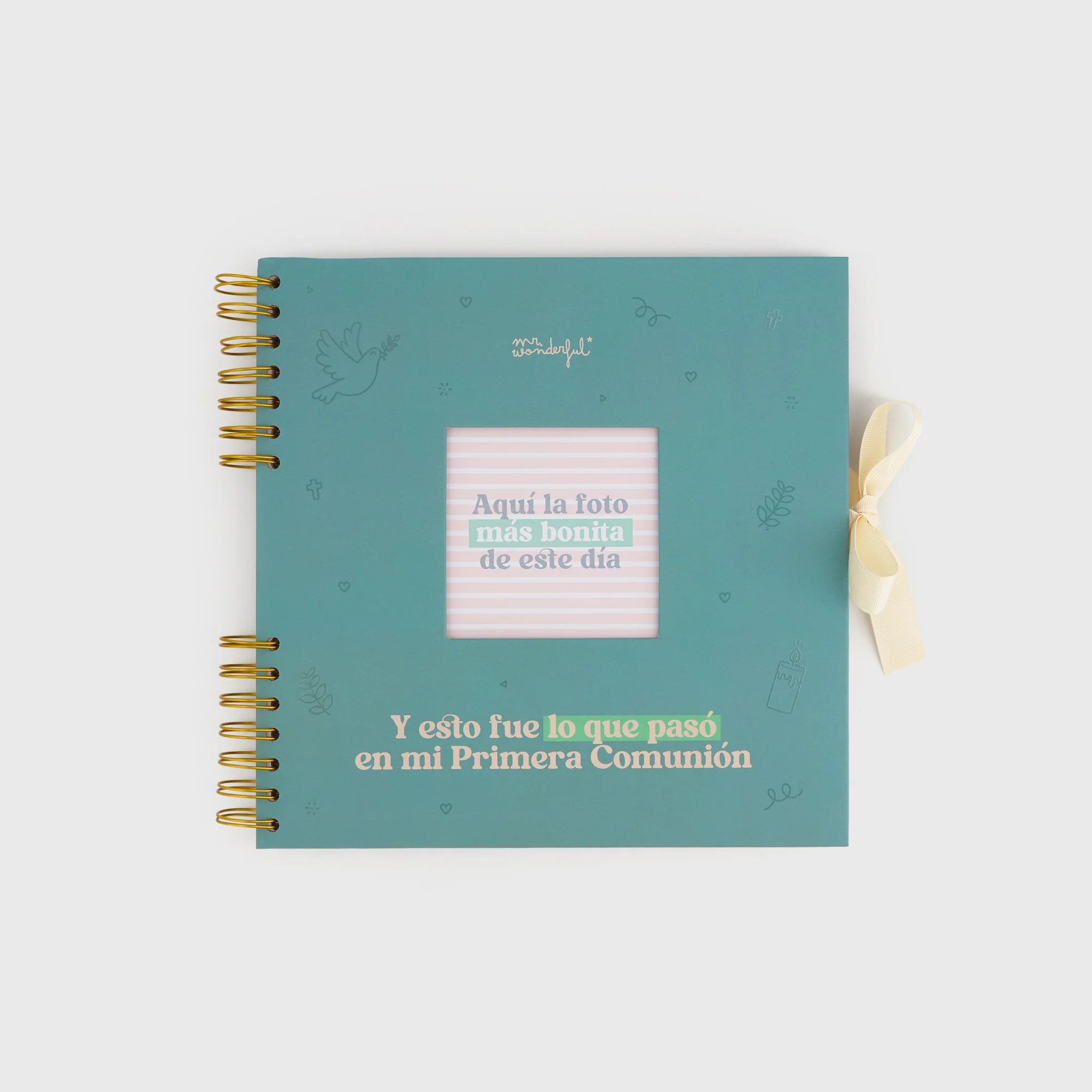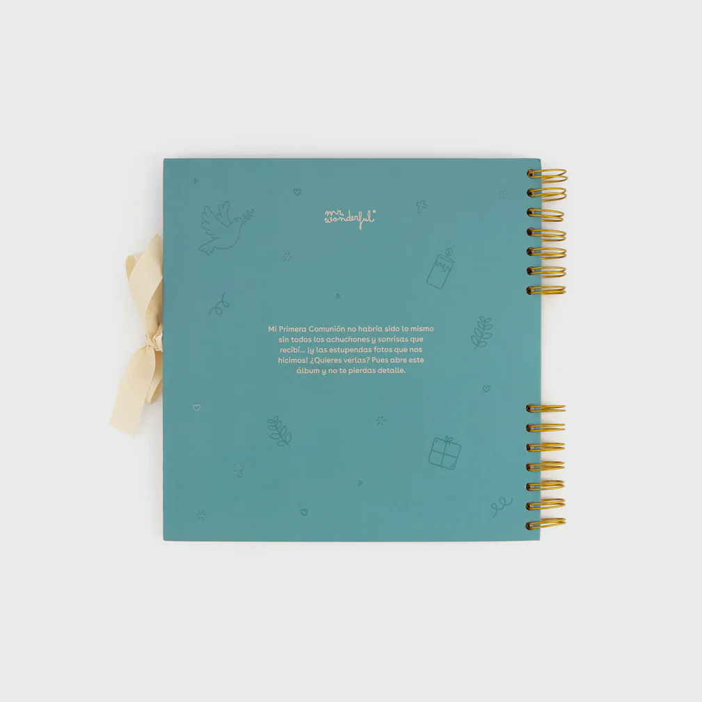 Álbum de fotos con diseño encantador, ideal para conservar los momentos más bonitos de la Primera Comunión.