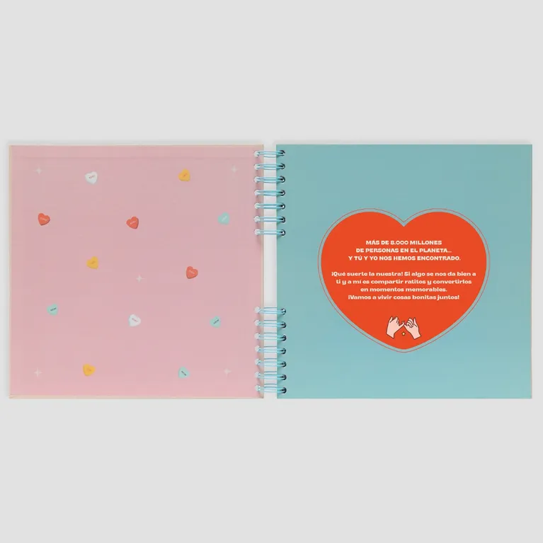 Álbum de fotos de temática de amor, con 64 páginas. En 25 de ellas encontramos un título que da una pista sobre el plan de pareja propuesto un poco más abajo, que se encuentra cubierto con una pastilla de tinta rasca-rasca que, al rascarlo, descubre un plan sorpresa para realizar en pareja. Una vez realizado el plan, se deberá ilustrar esa página en concreto y la siguiente con fotografías y/o recuerdos de ese día. Tras esos 25 planes, encontramos espacio para seis planes más que haga la pareja, pero que no vienen pautados previamente (en sus páginas encontraremos espacio para que ellos/ellas escriban el título del plan y expliquen en qué ha consistido). Incluye dos hojas de pegatinas. Cuenta con el certificado FSC, que garantiza que ha sido realizado con papel proveniente de bosques gestionados de forma responsable. Si, hagáis lo que hagáis, sabéis que lo pasaréis genial, este álbum es para vosotros. ¡A generar recuerdos juntos! Características: Medidas: 26,5 x 3 x 25 cm
