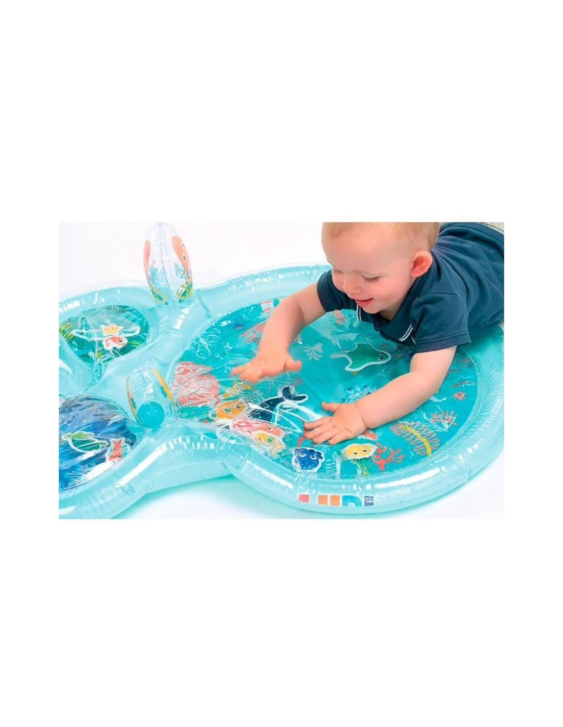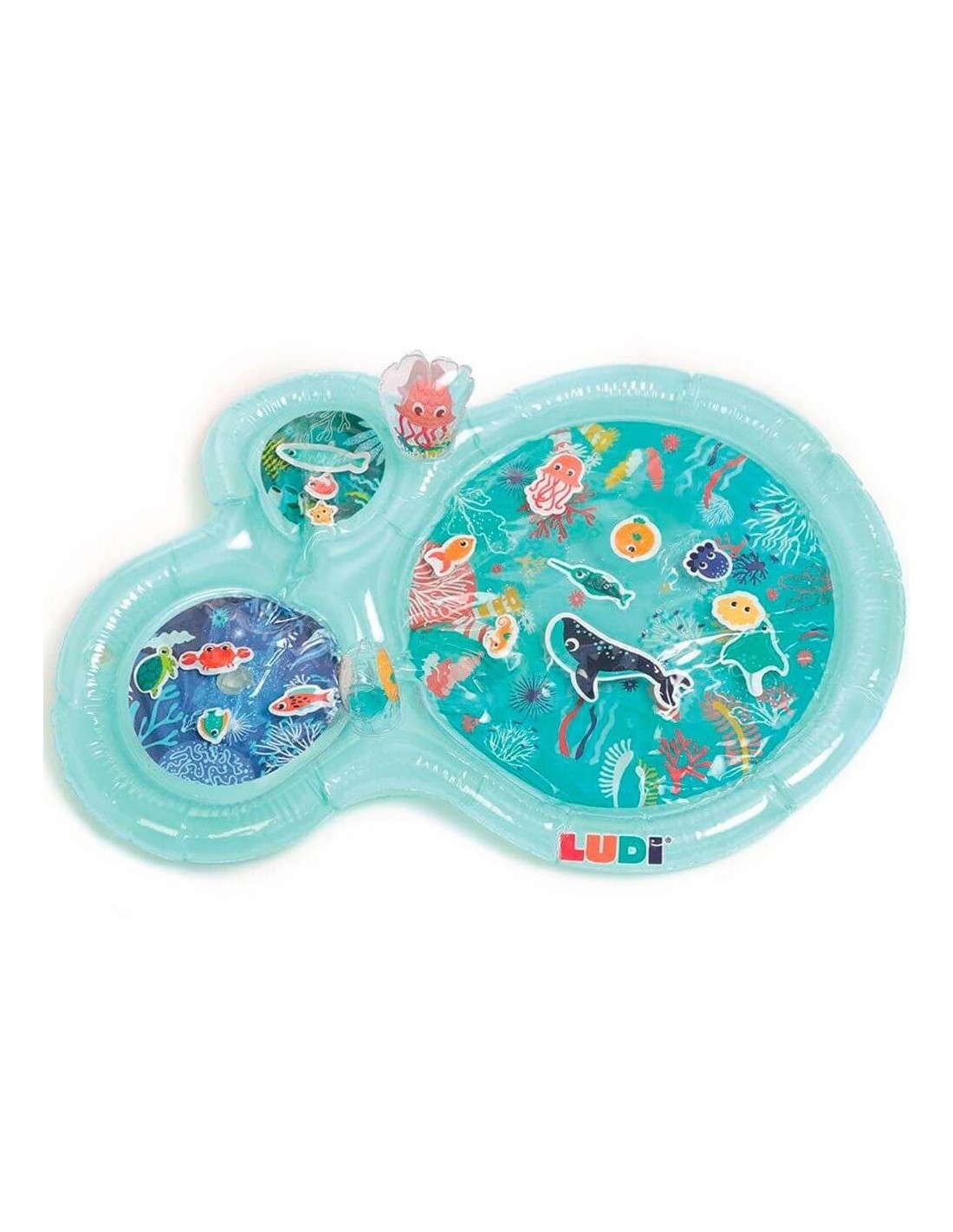 Sumérgete en una experiencia sensorial única con el Área de juego de agua Marina de Ludi. Esta colchoneta inflable permite a los bebés explorar un mundo submarino lleno de colores y movimientos, sin necesidad de mojarse.