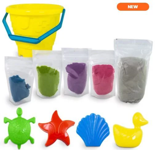 Hazte con este set de arena cinética y permite que los niños disfruten de la experiencia sensorial de la playa desde la comodidad de casa. ¡Diversión garantizada para pequeños y grandes!