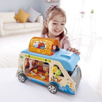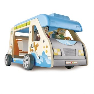 ¡Aventuras en caravana! Surf, buceo, practicar ala delta, acampar en grandes bosques… a los peques les esperan muchas aventuras con este set de Hape, y es que contiene una gran diversidad de accesorios para que puedan realizar diferentes actividades en la caravana. Además, la podrán decorar como quieran con las pegatinas que vienen incluidas.