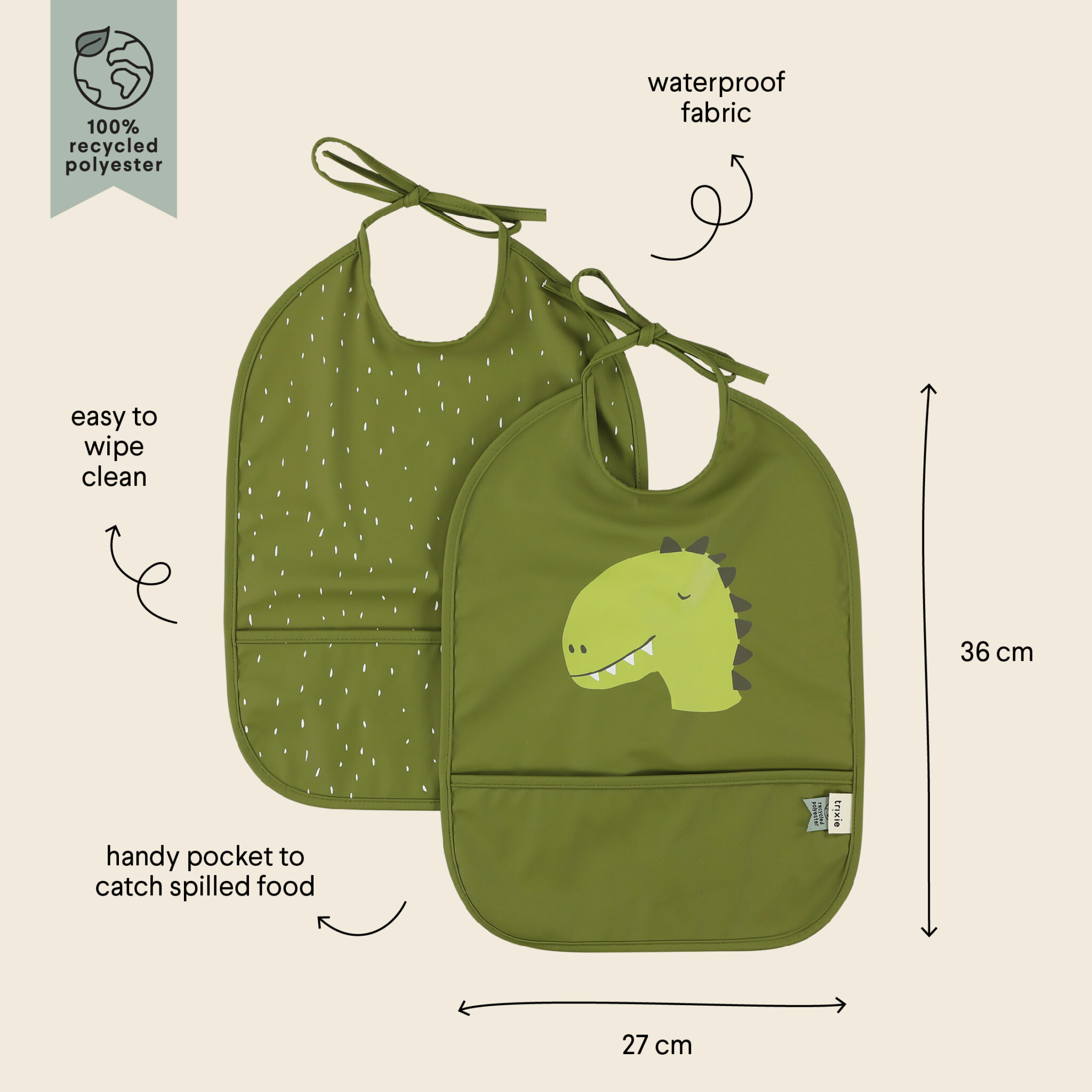 Babero Impermeable 2 uds Mr. Dino de Trixie – Resistentes, Ligeros y con Cierre de Velcro