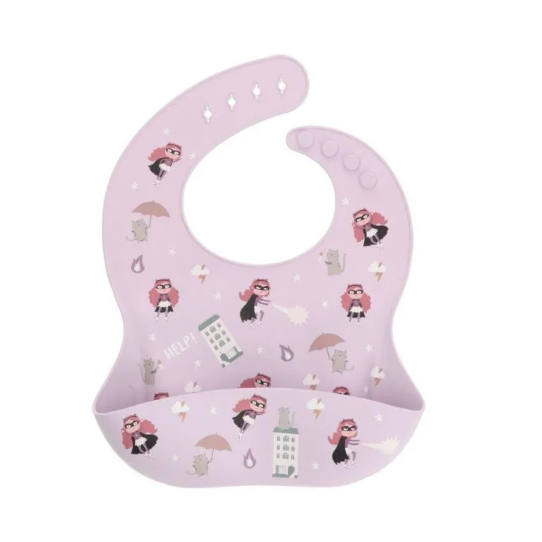 Babero de silicona con un bolsillo recogemigas para evitar que caiga la comida a la ropa.