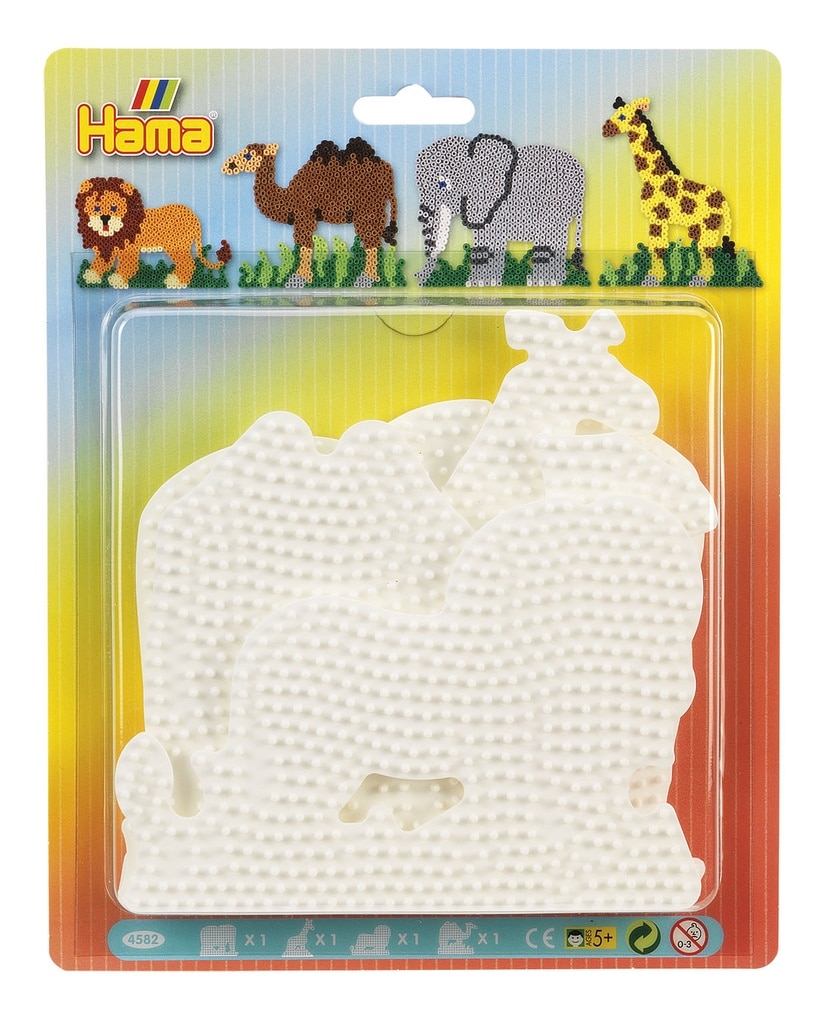 Blister Hama Beads Midi 4 Placas. Pegboards elefante, jirafa, león y camello