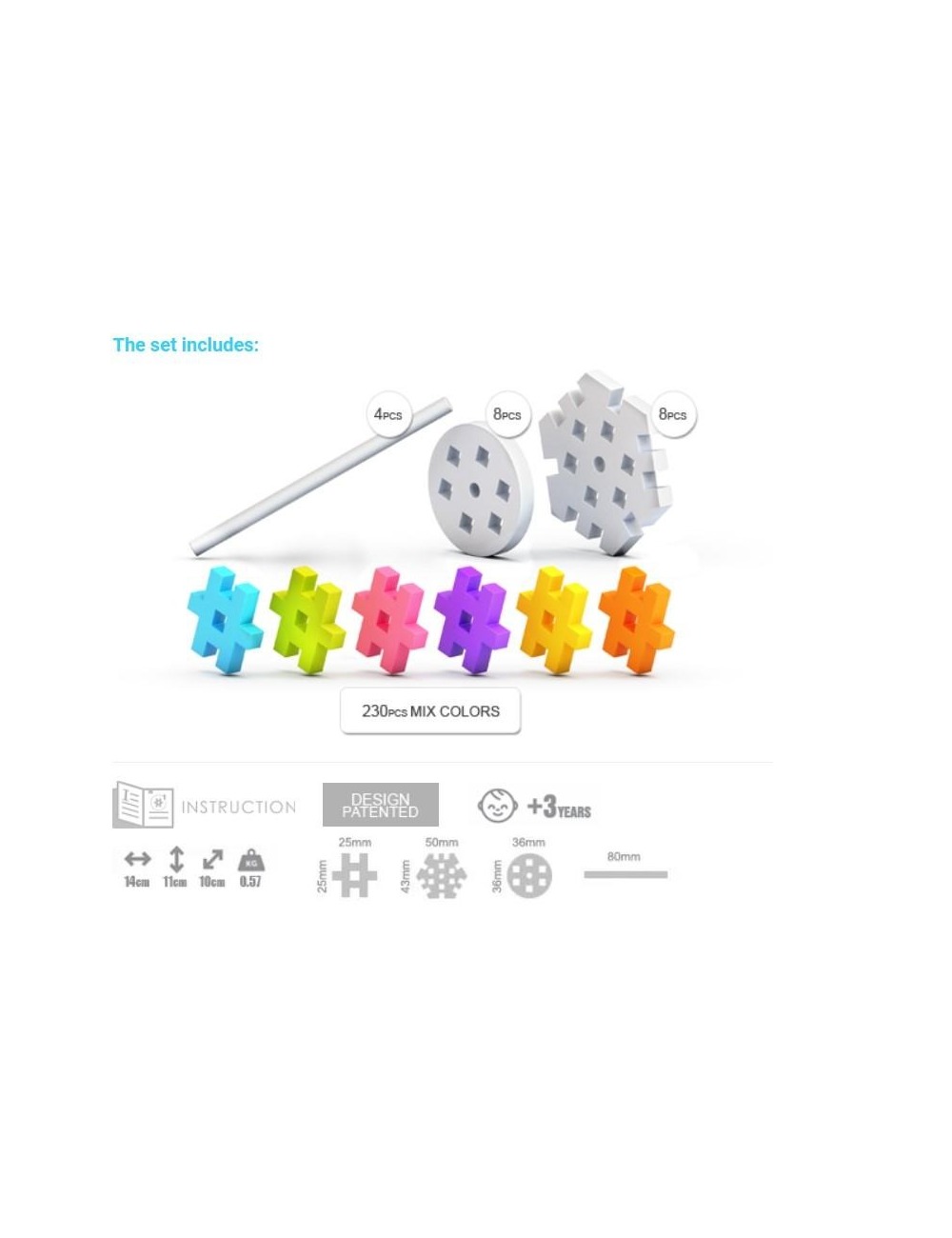Además de la construcción libre, los bloques Meli permiten múltiples usos educativos: clasificar por colores, contar, representar números y letras, realizar operaciones matemáticas sencillas o trabajar seriaciones y patrones. Incluye una guía estándar de patrones que sirve como apoyo inicial, aunque el verdadero valor del juego reside en la creación libre y el descubrimiento personal.