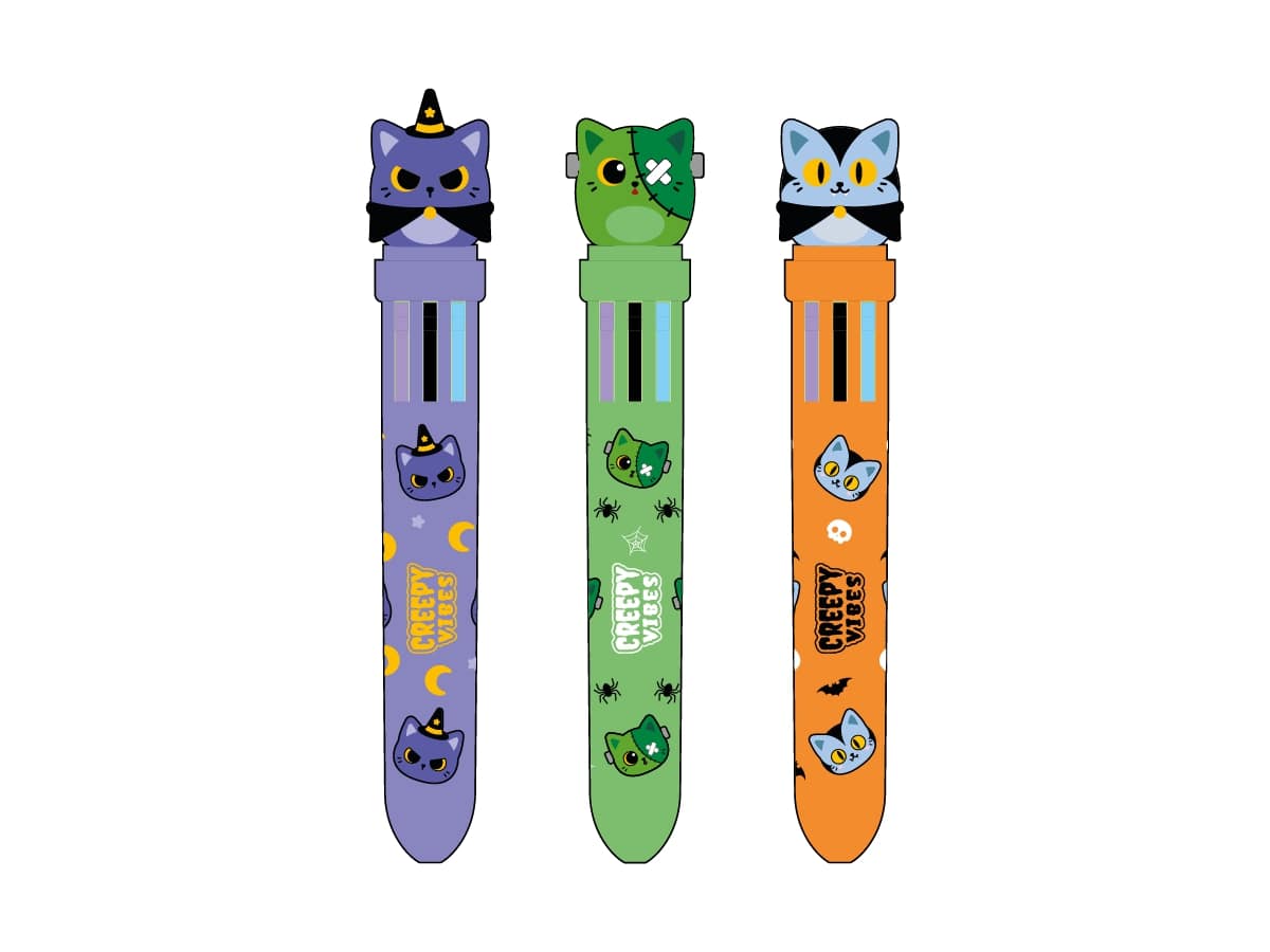 Bolígrafo 10 Colores en 1 Creepy Vibes – Bolígrafo multicolor infantil – Diseño divertido – Escritura creativa y original