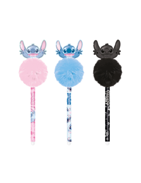 Bolígrafo borrable con pompón suave y goma incorporada, disponible en diseños variados de la colección Stitch Fluffy.