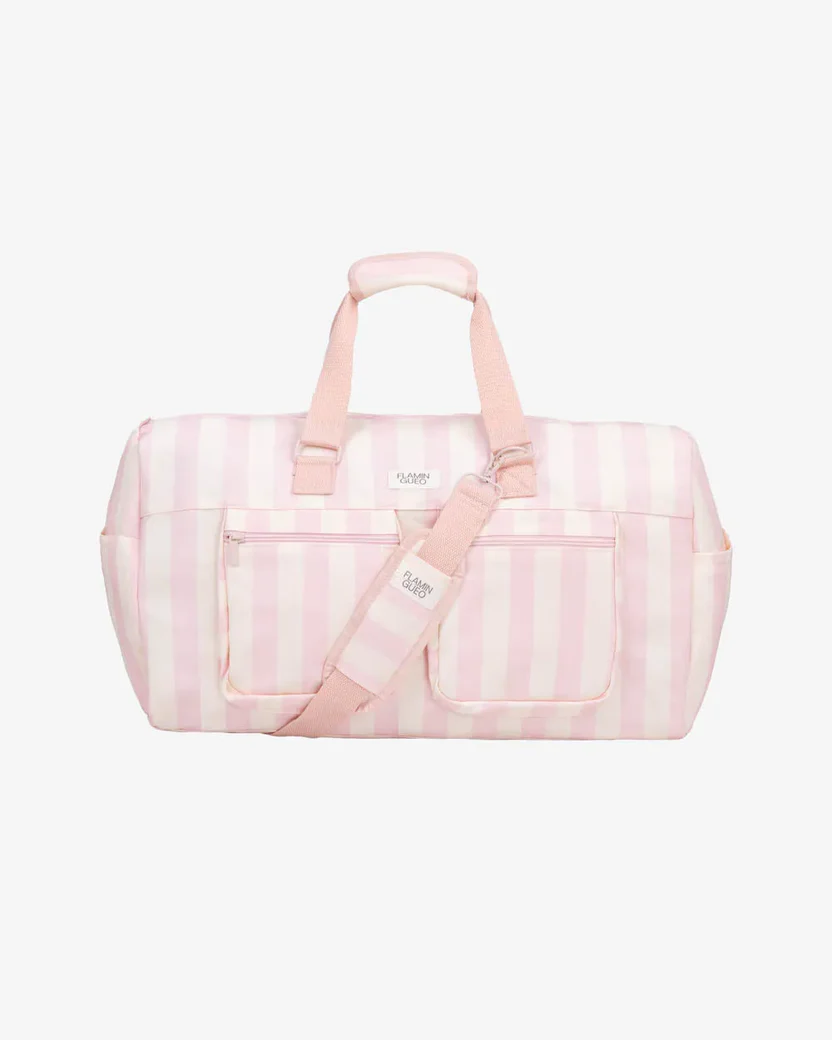 La bolsa de viaje infantil Coconut de Flamingueo, disponible en color rosa o azul a elegir, es la compañera ideal para los pequeños aventureros. Su diseño funcional y ligero la hace perfecta para viajes, fines de semana o actividades fuera de casa.