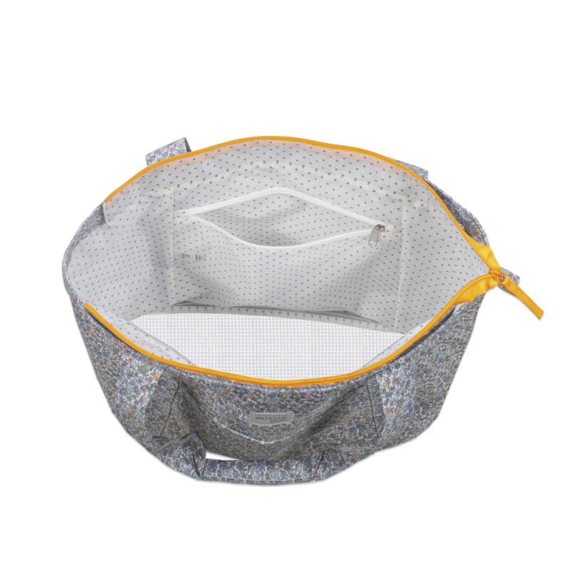 Bolsa amplia y ligera con estampado floral, perfecta para llevar todo lo necesario en salidas con niños.