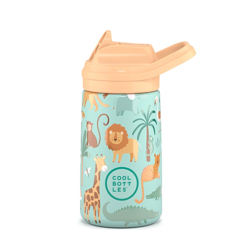 🐾 Hidratación fresca y divertida – La botella Cool Bottles Kiddie Wild Crew 350 ml mantiene la bebida fría o caliente durante horas con un diseño animal print lleno de energía.