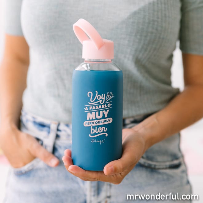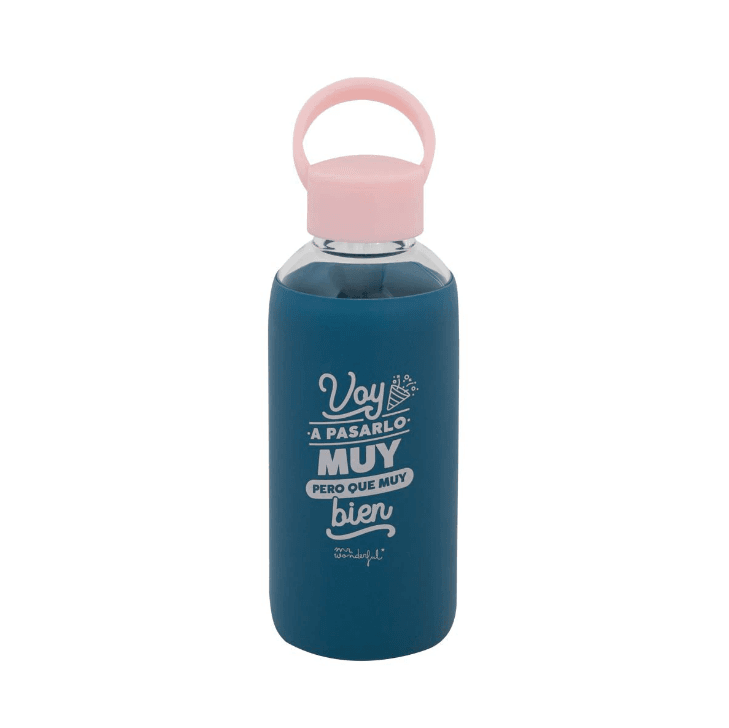 Una botella de cristal con funda de silicona superbonita para que, estés donde estés, nada te pare.