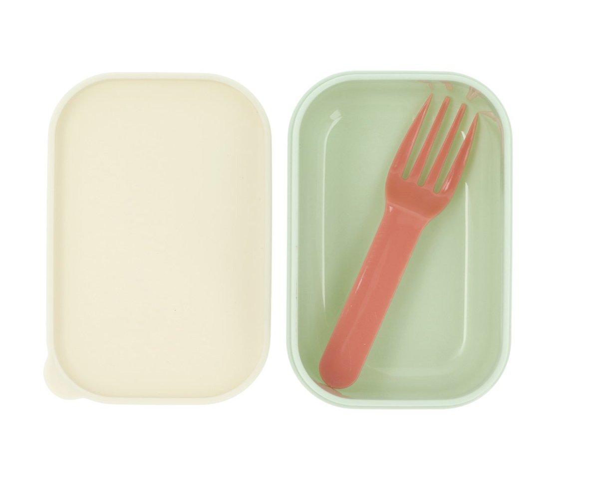 Fiambrera bento para llevar almuerzo al cole y con una cajita interior separadora, con un tenedor, para llevar también la fruta.