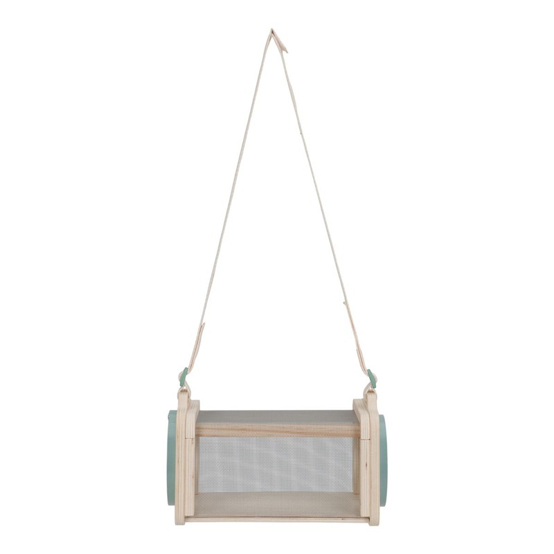 Está fabricada en madera y cuenta con laterales de malla que permiten observar el interior y que los insectos puedan respirar mientras se observan antes de devolverlos a su entorno natural. Incluye un asa superior para transportarla cómodamente en excursiones, paseos por el campo o juegos en el jardín.