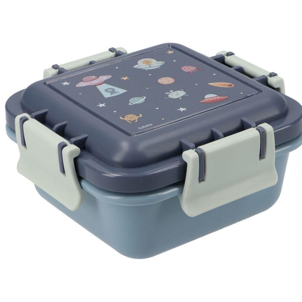 Caja de almuerzo pequeña para llevar snacks al parque o el almuerzo al colegio. Esta cajita tiene una bonita ilustración en la tapadera y se cierra con facilidad para que los más pequeños puedan abrirla sin dificultad