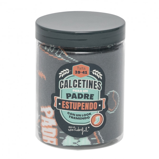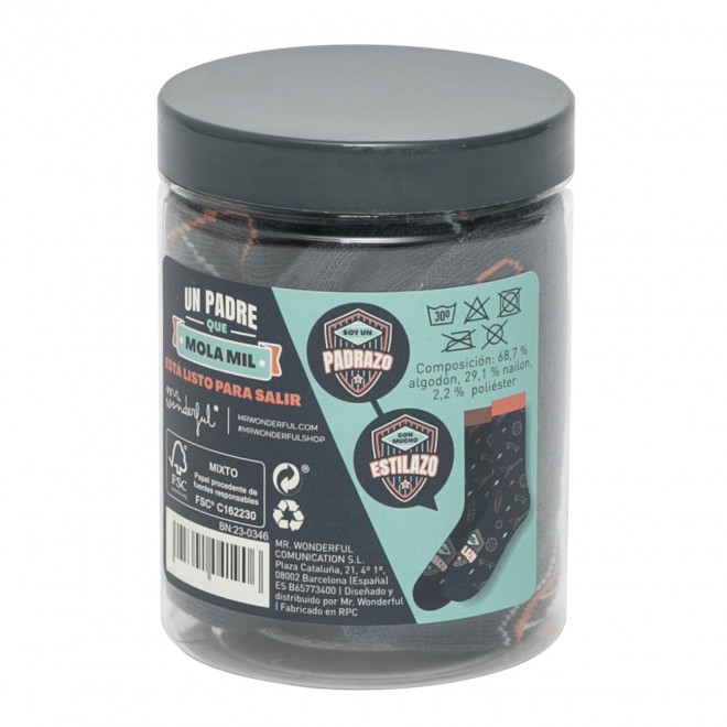 – Calcetines con mensaje dirigido a padres. El mensaje, en español, se divide entre ambos calcetines. Aparte, cuentan con un estampado muy divertido.