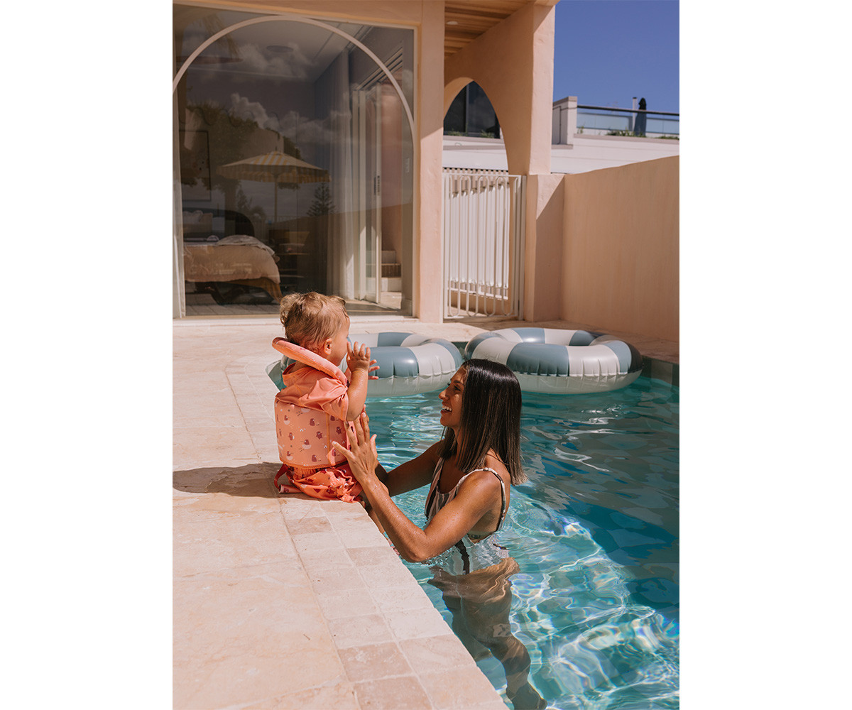 Está fabricada con tejido UPF 50+, que protege frente a los rayos solares, y su material es ligero, transpirable y de secado rápido, por lo que resulta muy cómoda incluso cuando está mojada. Además, su tejido elástico permite total libertad de movimiento para jugar, nadar o correr.