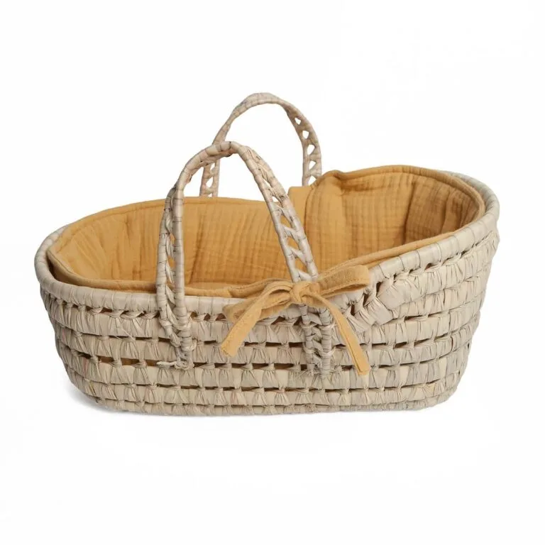 ¡El capazo de mimbre mostaza BOBBLE Wookids es un encantador nido para la muñeca de tu hij@!