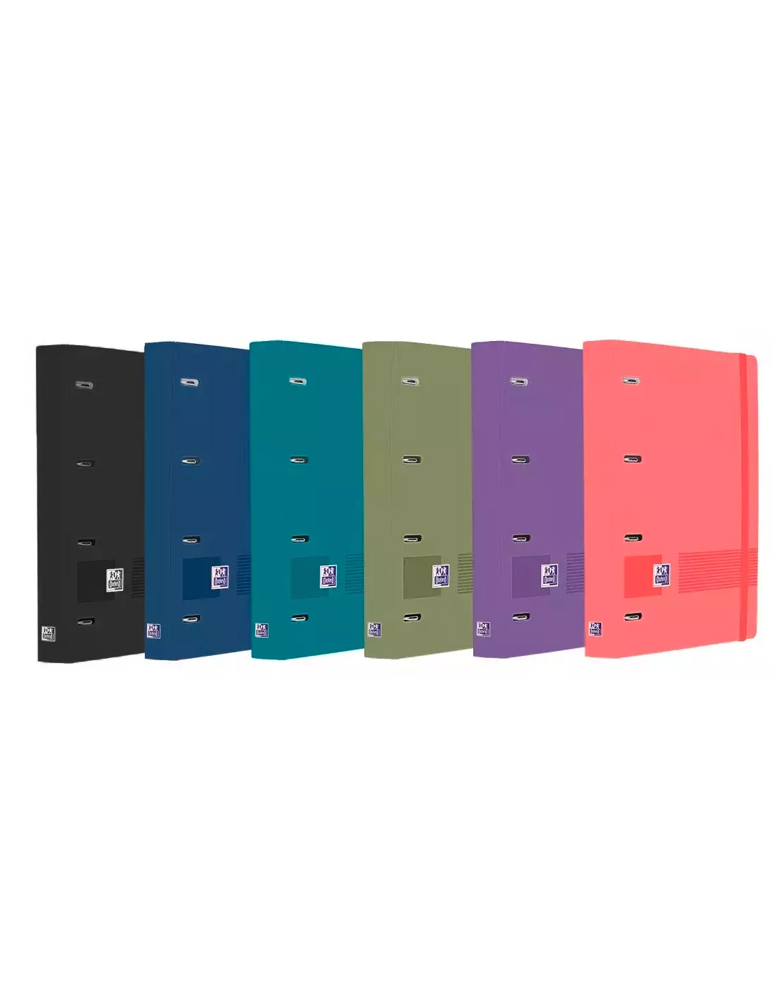 Características: Carpeta anillas con recambio Tapa plástico polyfoam opaco Incluye recambio Oxford con bandas de color de 100 hojas con cuadrícula 5×5 en su interior 4 anillas de 35 mm Rojo, Verde Manzana, Melocotón, Aqua y Azul Marino