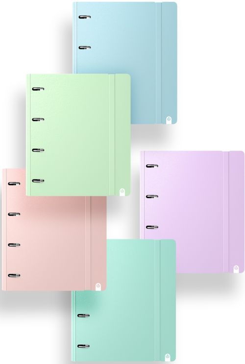 Carpebloc A4+ 4 anillas 35mm recambio 5 colores pastel tapa extradura tacto suave
