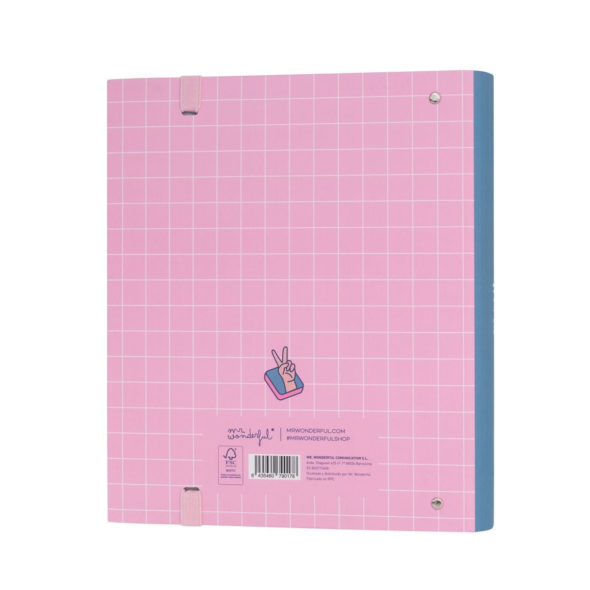 Carpeta de cartón con diseño y frase motivadora Mr. Wonderful, con 4 anillas vistas y 120 hojas cuadriculadas en su interior. Con laminado mate antirrayaduras.