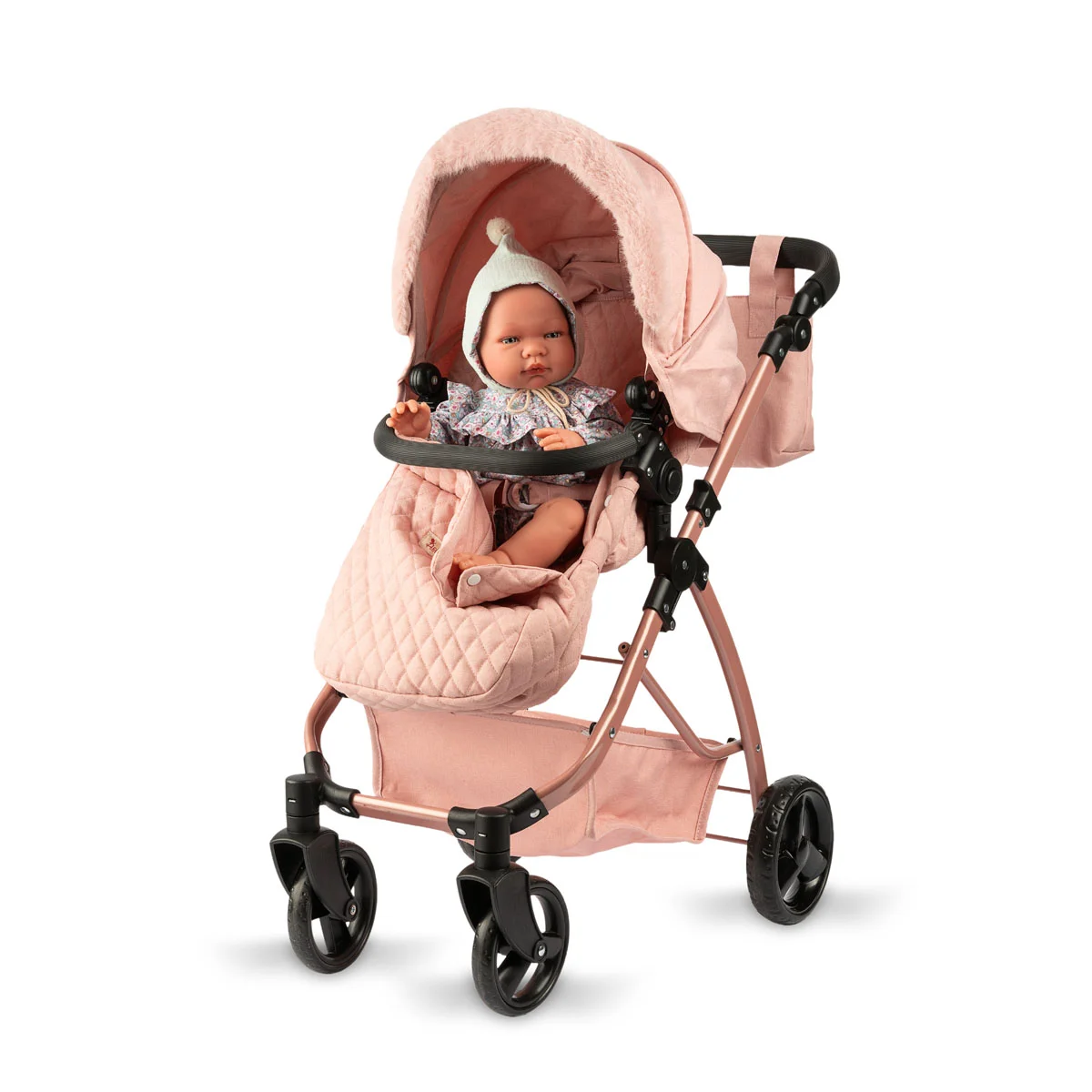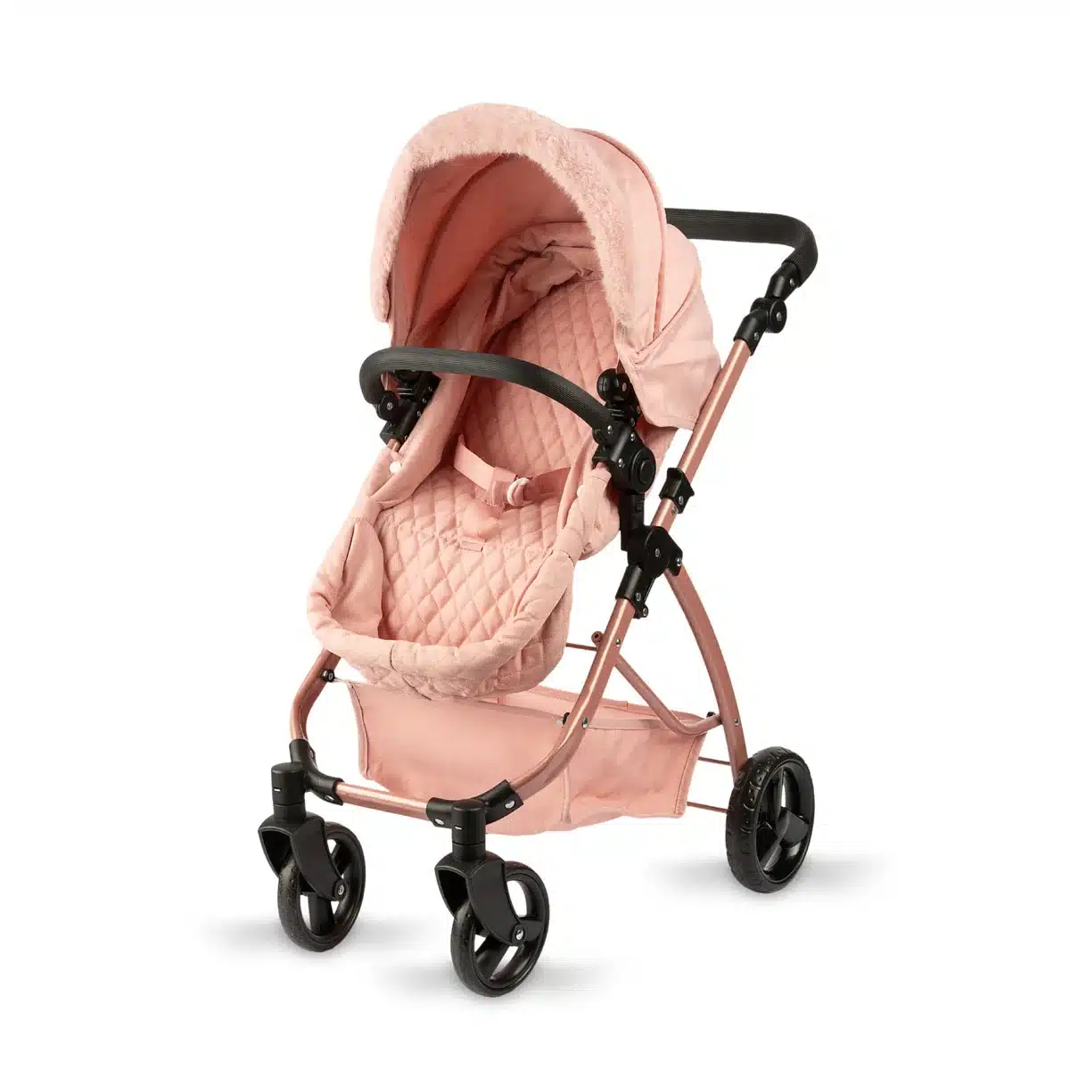 El Carro Modern Mami 2 en 1 es un coche de muñecas elegante y funcional, pensado para que los niños de 3 a 7 años disfruten del juego simbólico con comodidad y realismo. Su estructura en tono rosa metalizado aporta un diseño moderno, mientras que su construcción robusta garantiza estabilidad en cada paseo.