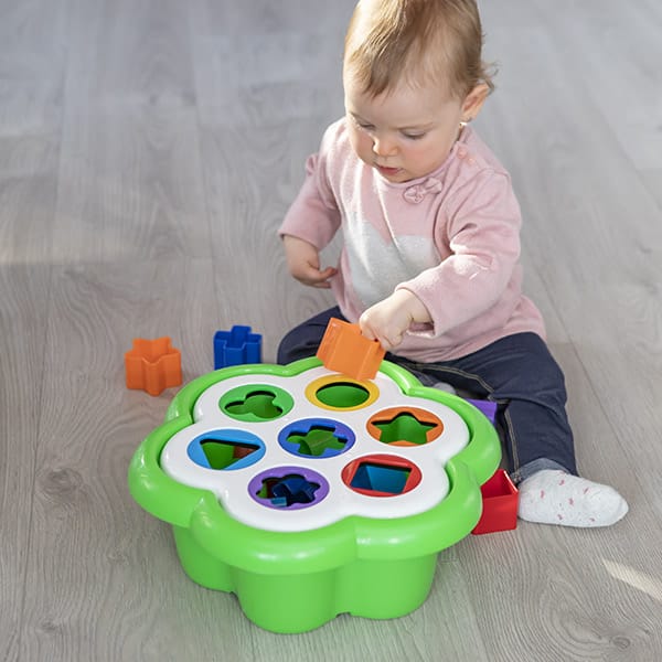 Funny Shapes, el clasificador de formas y colores con silueta de margarita, contiene 7 agujeros de diferentes tamaños y colores, cada uno de ellos correspondiente con uno de los bloques que las pequeñas manitas del bebé manipularán. Es ideal para promover el reconocimiento de formas y colores, la coordinación óculo-manual y el desarrollo temprano de la motricidad y la destreza. ¿Serán capaces de encajar cada figura en su respectiva silueta?