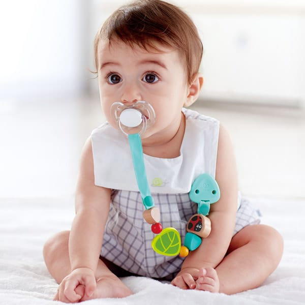 Clip muy funcional para mantener el chupete limpio y al alcance del bebé. Es ideal para estimular sus sentidos y promover su desarrollo.