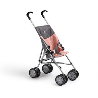 Bonito carrito para muñecas de hasta 45cm de color rosa y un diseño moderno, ligero y plegable. ¡Infinidad de horas de juego simbólico están aseguradas!