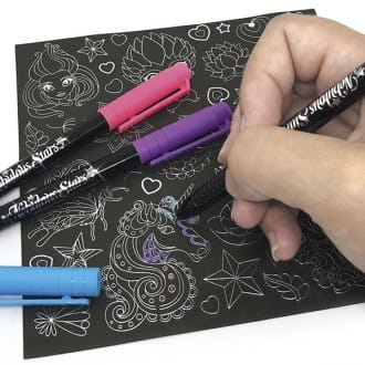 – Incluye: álbum para coleccionar las pegatinas, 220 pegatinas diferentes, 80 pegatinas para colorear, dos borradores y 5 bolígrafos de gel con tinta neón.