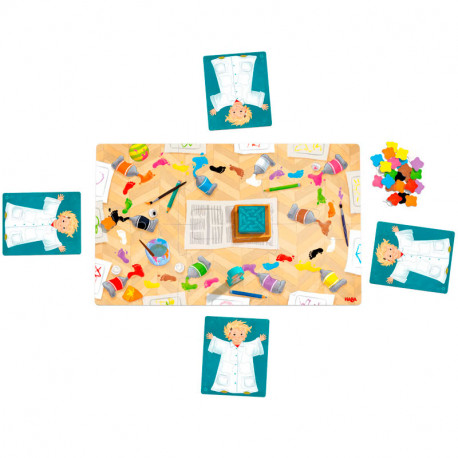 Klecks pinta unos magníficos cuadros de colores. Pero, para ello, nuestro pequeño artista necesita manchas de pintura. Los jugadores/as avanzan con Klecks de bote en bote destapando las cartas y mencionando los colores. De este modo, acumulan muchas manchas de recuerdo. Pero, ¡cuidado! A Toffy, el perro de Klecks, le encanta llevarse los pinceles. Gana quien primero consiga colocar siete manchas en su bata.