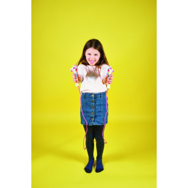 Salta a la cuerda con nuestras bonitas cuerdas con asas de madera decoradas por ambos lados.