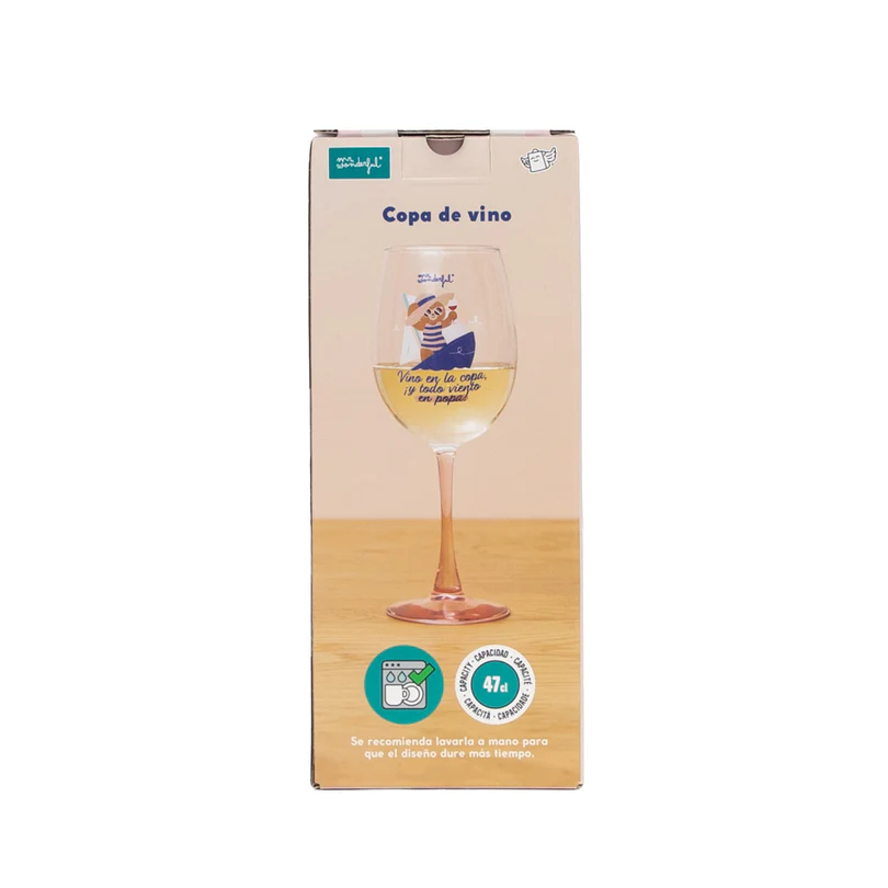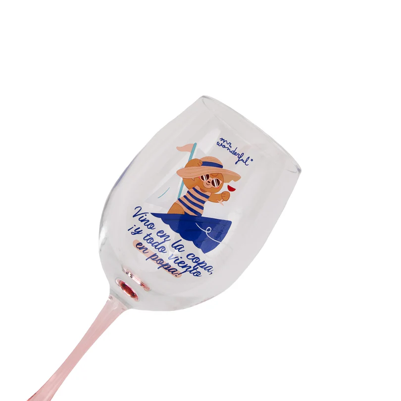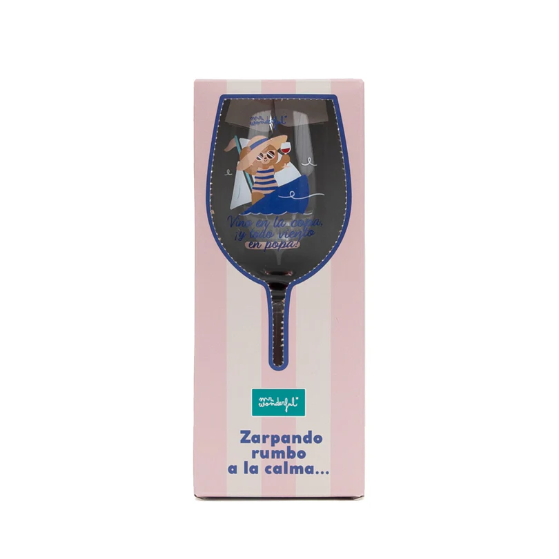 La copa de vino Vino en la copa ¡y todo viento en popa! de Mr Wonderful es un regalo ideal para sorprender con un toque de humor y cariño. Su diseño incluye una ilustración divertida y un mensaje positivo, perfecto para acompañar momentos especiales.