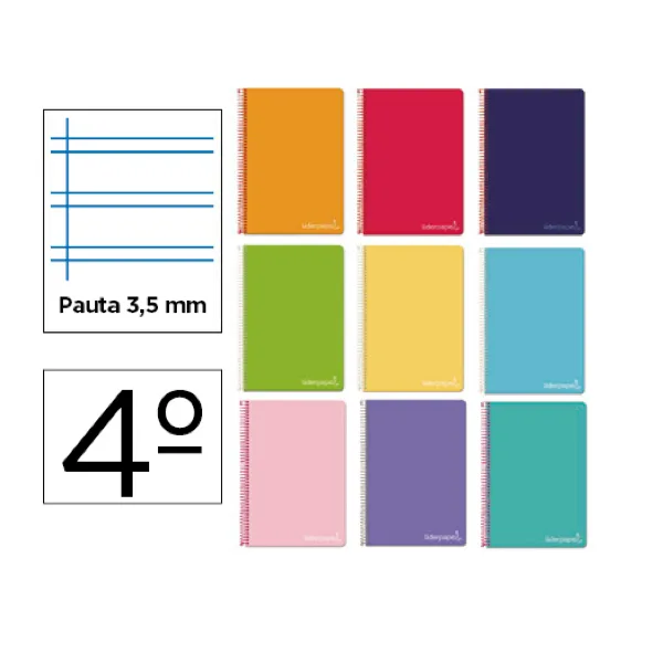 Cuaderno espiral liderpapel cuarto witty tapa dura 80h 75gr pauta ancha 3,5mm con margen colores surtidos.