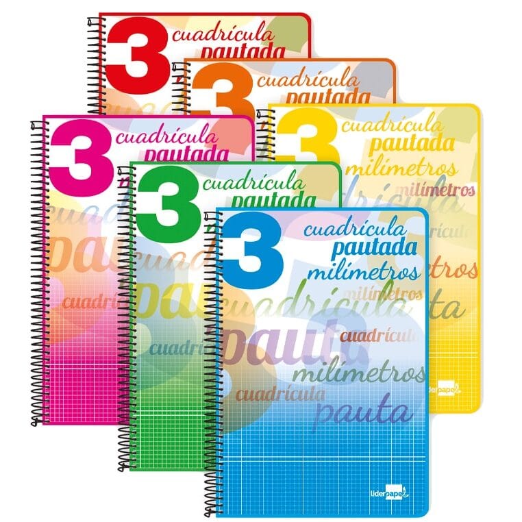 Cuaderno espiral liderpapel cuarto pautaguia tapa dura 80h 75 gr cuadro pautado 3 mm con margen.