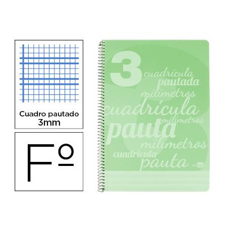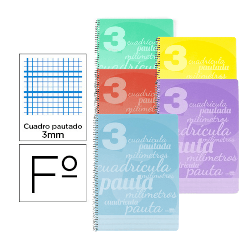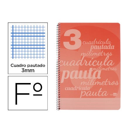 Cuaderno espiral cuadro-pautado 3mm con tapa plástico