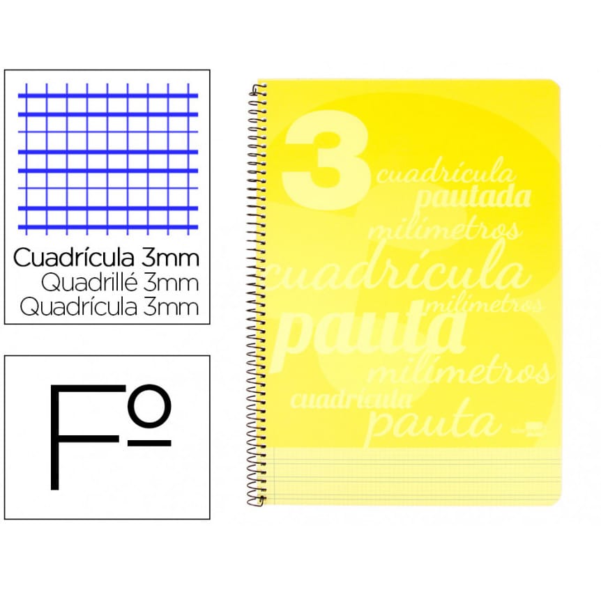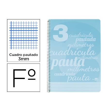 Cuaderno espiral liderpapel folio pautaguia tapa plastico 80h 75gr cuadro pautado 3mm con margen.
