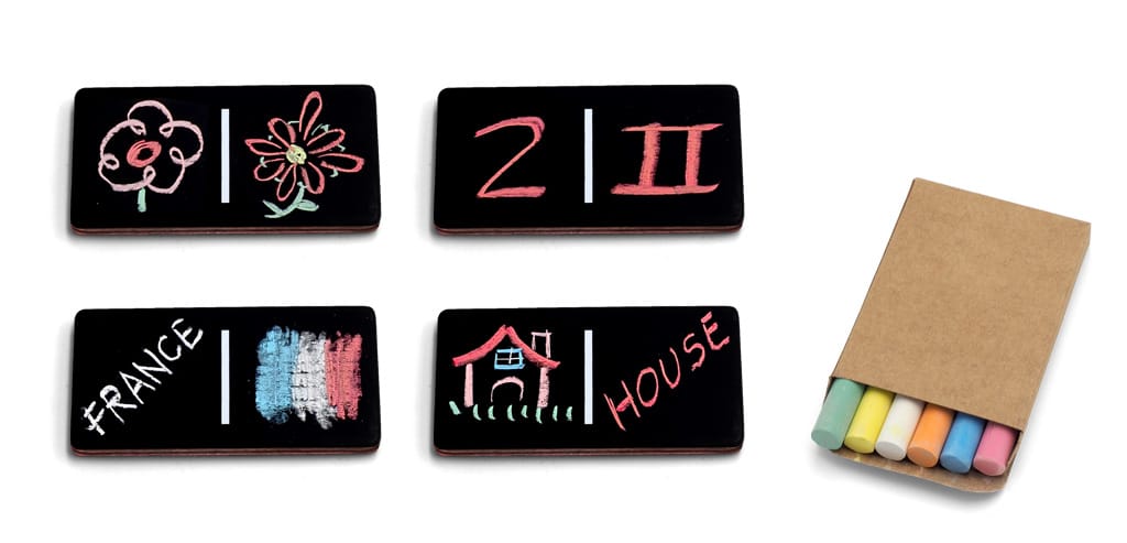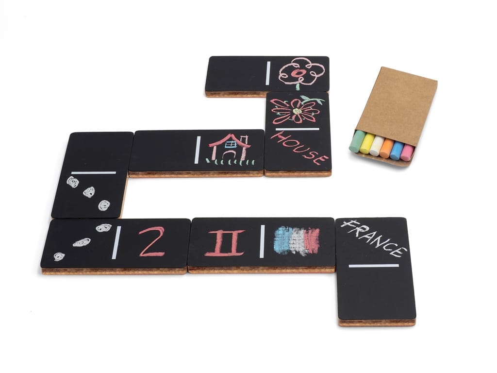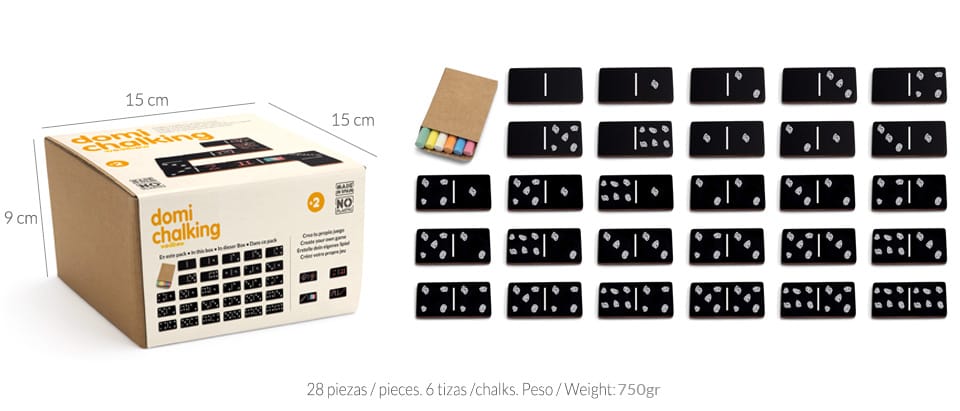 Si te gusta el dominó, el Domi-Chalking te gustará mucho más, porque te lo vas a inventar todo. El primer juego es inventarlo, después, pintarlo y, por fín, jugar para ganar (o no).