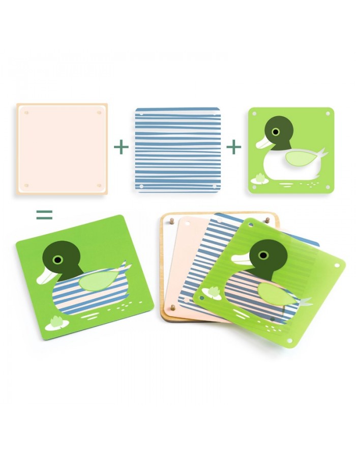 Para reproducir el modelo el niño tendrá que colocar correctamente los 3 tipos de tarjetas transparentes: color, pelaje y plantilla de animales.