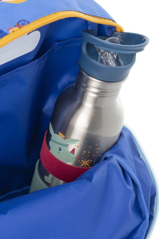 Cuenta con un compartimento principal con cremallera, ideal para guardar la merienda, una muda o su peluche favorito. Las correas ajustables y el cierre con clip en el pecho garantizan un ajuste cómodo y seguro, adaptándose al tamaño y movimiento del niño.