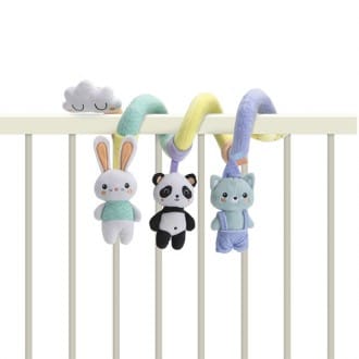 Este bonito espiral de actividades está especialmente diseñado para colocarse en cualquier tipo de cuna. Desde bien pequeñito el bebé podrá manipular los animalitos que cuelgan de él y descubrir los sonidos que emite cada uno de ellos. Es perfecto para estimular el desarrollo de la motricidad y de los sentidos del bebé.