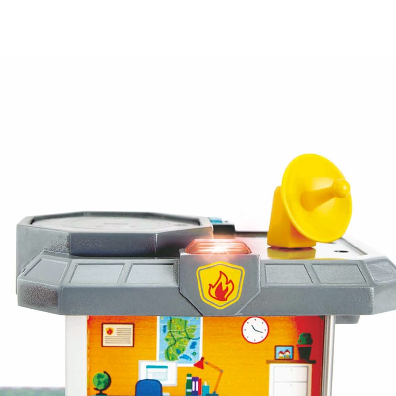 Además, la estación de servicios de emergencia cuenta con una torre de control de tres pisos con barra para que los bomberos puedan bajar por ella. El juego también incluye accesorios adicionales, como árboles, fuego y personajes, para que los niños puedan crear diferentes escenarios y situaciones de emergencia y añadir más detalles a la aventura de juego.
