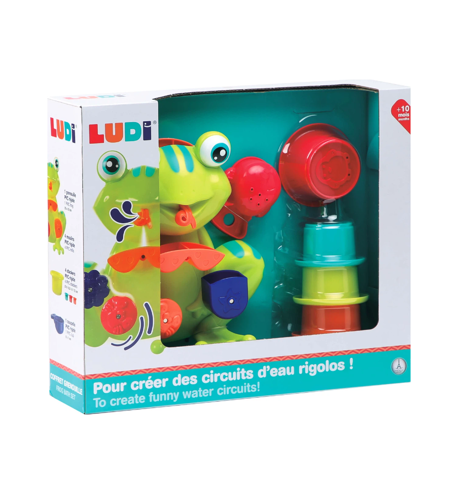 Estuche de baño Ranita de Ludi – Juguetes sensoriales para el agua y organización práctica