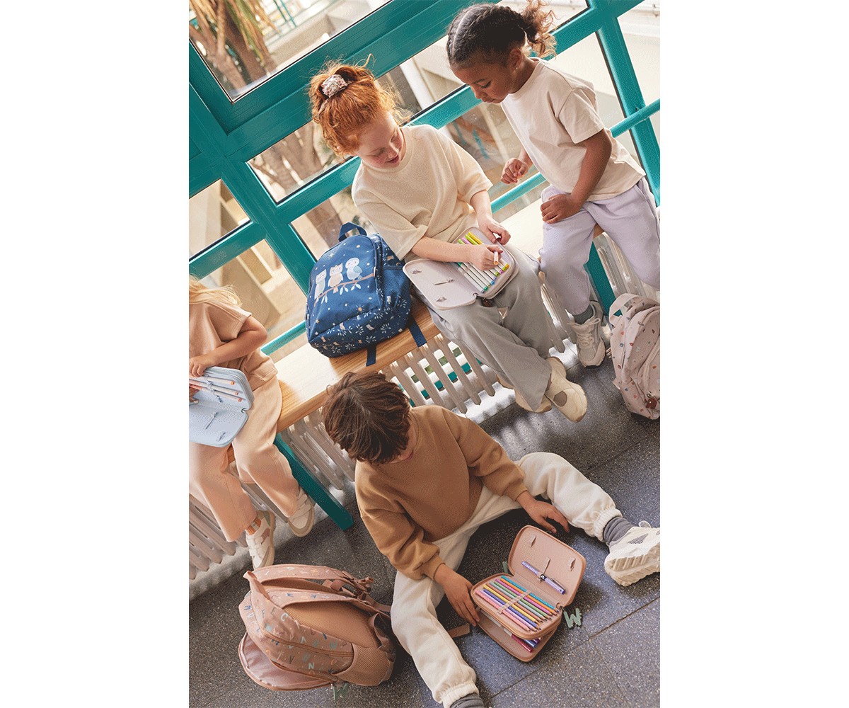 Dispone de dos compartimentos con cierre de cremallera, ideales para mantener en orden lápices, rotuladores, gomas y accesorios escolares. Su exterior impermeable protege el contenido frente a la humedad y garantiza mayor durabilidad. Además, los tiradores de silicona exclusivos de la colección facilitan la apertura y cierre para los más pequeños.