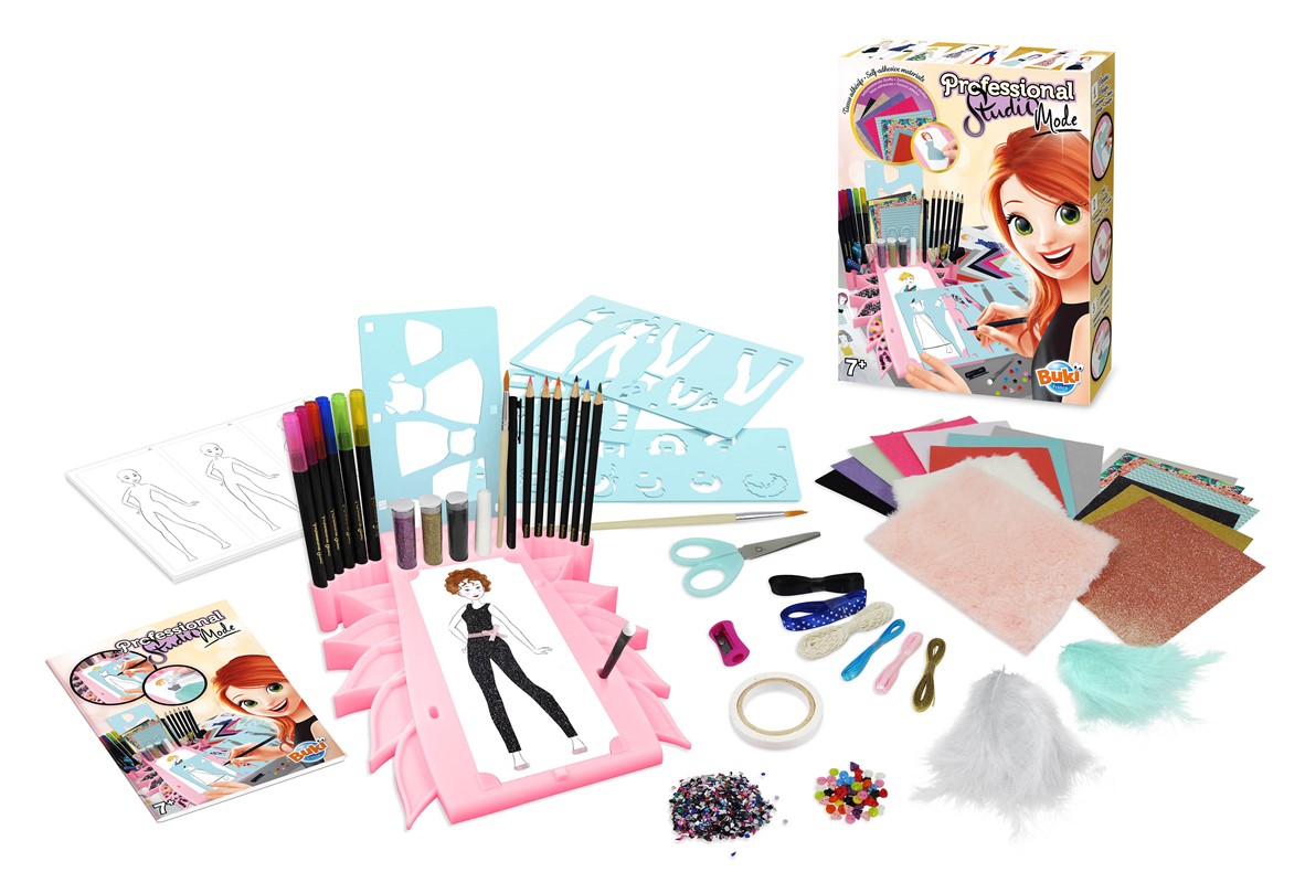 El Estudio Profesional de Moda es un completo set creativo pensado para pequeños apasionados por el diseño, el dibujo y la moda.