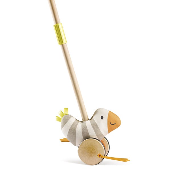 – Juguete para empujar de madera de alta calidad FSC (certificación que garantiza una gestión responsable de los recursos forestales del planeta desde un punto de vista ambiental responsable social y económico).